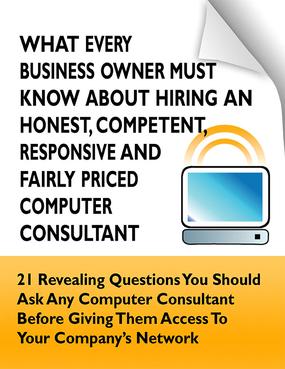 If so, I’d at least like to give you a copy of my new free report, “21 Critical Questions Your IT Consultant Should Be Able To Say ‘Yes’ To.” Even if you aren’t ready to make a change right now, this report will give you important questions you should ask your current IT person to make sure their policies, procedures and service standards won’t leave you vulnerable to expensive problems, lost data, viruses, hacker attacks and a host of other problems.